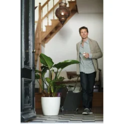 Plantentrolley van BPC (Bamboe plastic composiet). Dikte van het plateau 15 mm, 4 zwenkwieltjes van PP met een diameter van 40 mm, waarvan 2 met remmen. Maximale belasting 50 kg. Voor binnen gebruik.